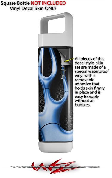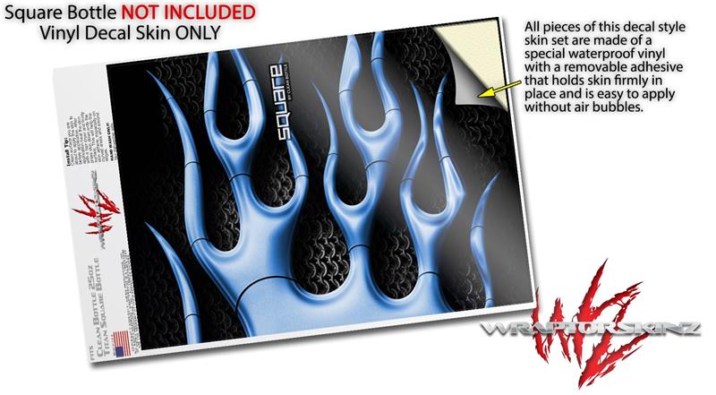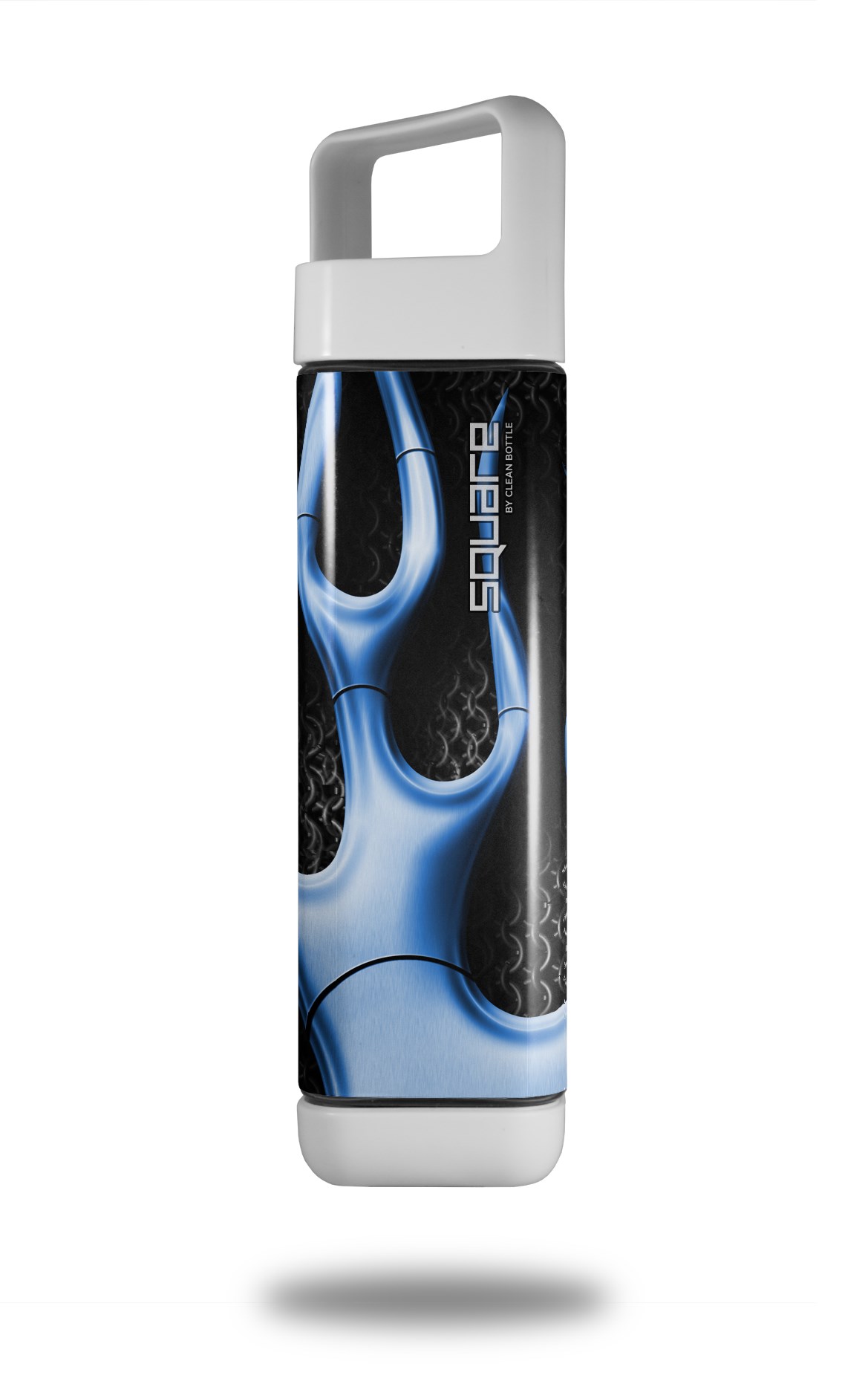 Skin Decal Wrap for Clean Bottle Square Titan Plastic 25oz Metal Flames Blue (BOTTLE NOT INCLUDED)