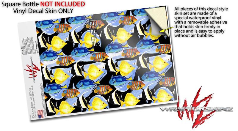 Skin Decal Wrap for Clean Bottle Square Titan Plastic 25oz Tropical Fish 01 Black (BOTTLE NOT INCLUDED)