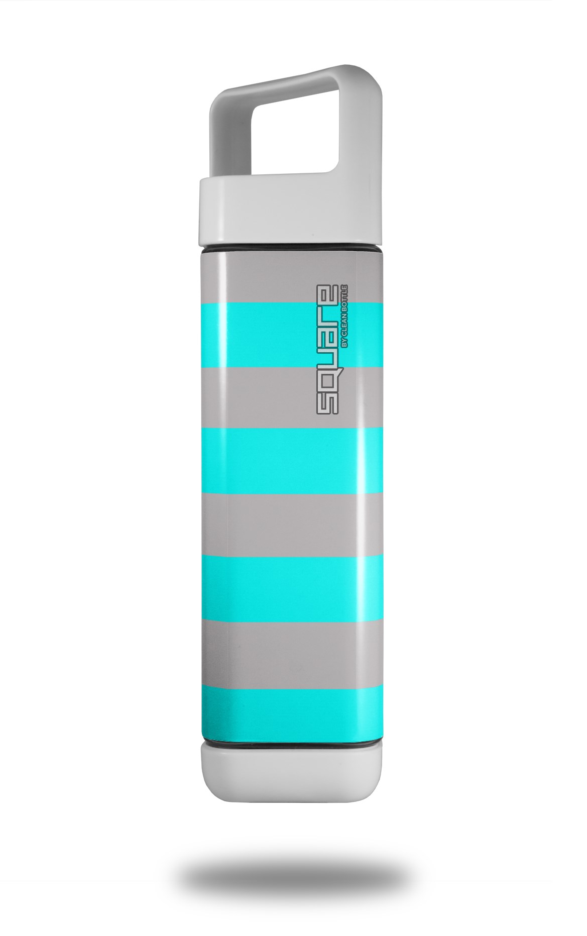 Skin Decal Wrap for Clean Bottle Square Titan Plastic 25oz Psycho Stripes Neon Teal and Gray (BOTTLE NOT INCLUDED)