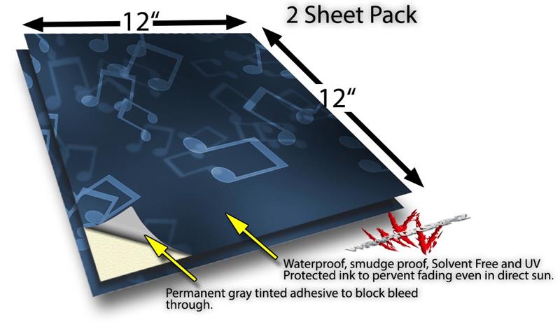 WraptoSkinz™ skin vinyl craft sheets are printed using superb photo quality designs and vibrant colors printed with special UV Protected fade resistant inks that last even in direct sun for years.  Unlike other brands our inks are NOT solvent based. WraptorSkinz are a manufactured from professional grade 3mill vinyl. These sheets are waterproof, the designs will not run or smear even if submerged in water.