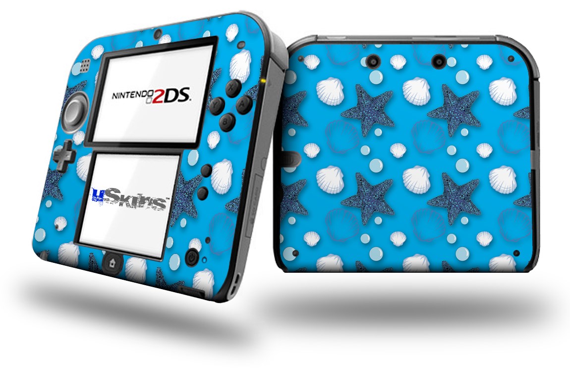 Starfish and Sea Shells Blue Medium - Decal Style Vinyl Skin fits Nintendo 2DS - 2DS NOT INCLUDED