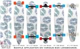 Our longboard skins are made so that one size fits boards up to 10” wide x 42” long. This means after applying the skin it you will trimming to fit you’re the shape of your board with a sharp utility knife.