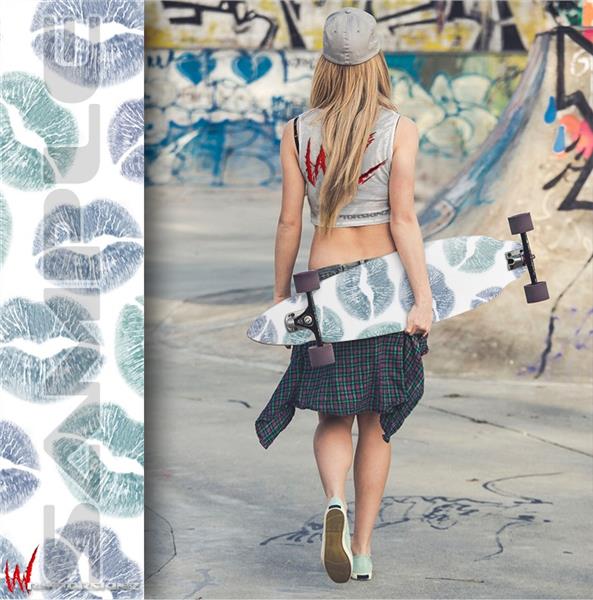 Blue Green Lips - Decal Style Vinyl Wrap Skin fits Longboard Skateboards up to 10"x42" (LONGBOARD NOT INCLUDED)