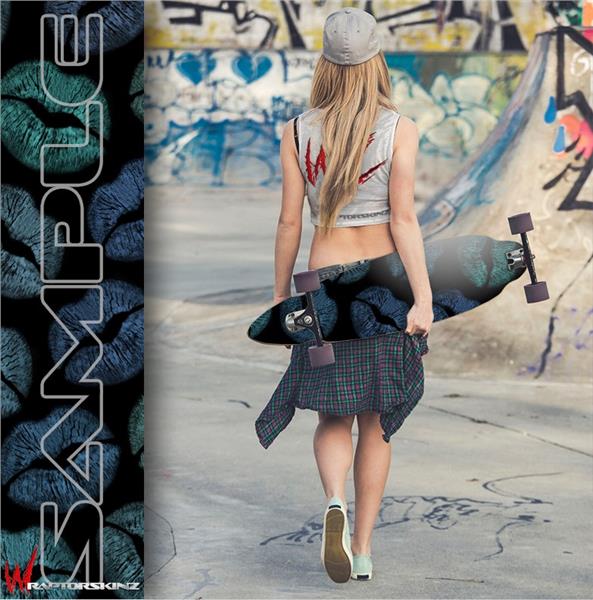 Blue Green And Black Lips - Decal Style Vinyl Wrap Skin fits Longboard Skateboards up to 10"x42" (LONGBOARD NOT INCLUDED)