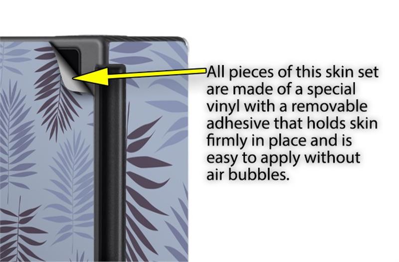 WraptoSkinz™ skins are superb photo quality designs and vibrant colors printed with special Eco-Friendly, fade resistant inks. Our skins are self-adhering flexible vinyl skins that helps prevent scratches. Made of composite, multi-layered commercial grade materials. The bottom layer is made with a special removable adhesive that is easily positioned and applied without air bubbles. We print your design on the bottom layer then bond a professional grade laminate over the entire skin adding a glossy protective finish.