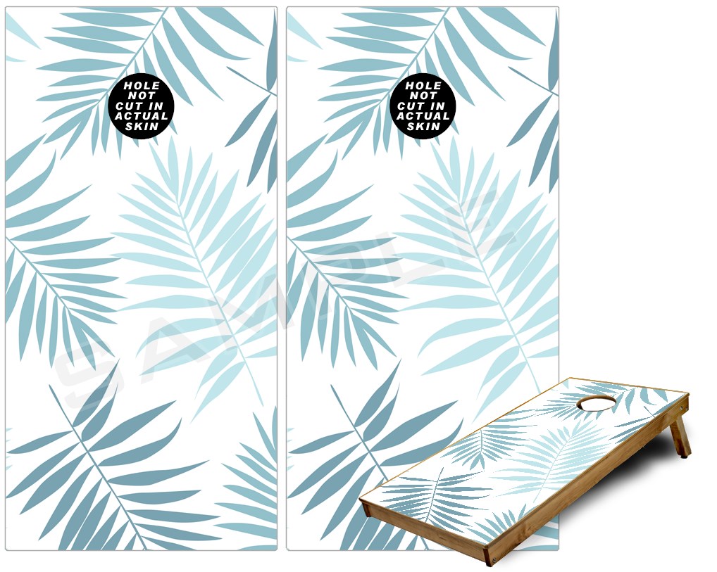 Cornhole Game Board Vinyl Skin Wrap Kit - Palms 02 Blue fits 24x48 game boards (GAMEBOARDS NOT INCLUDED)