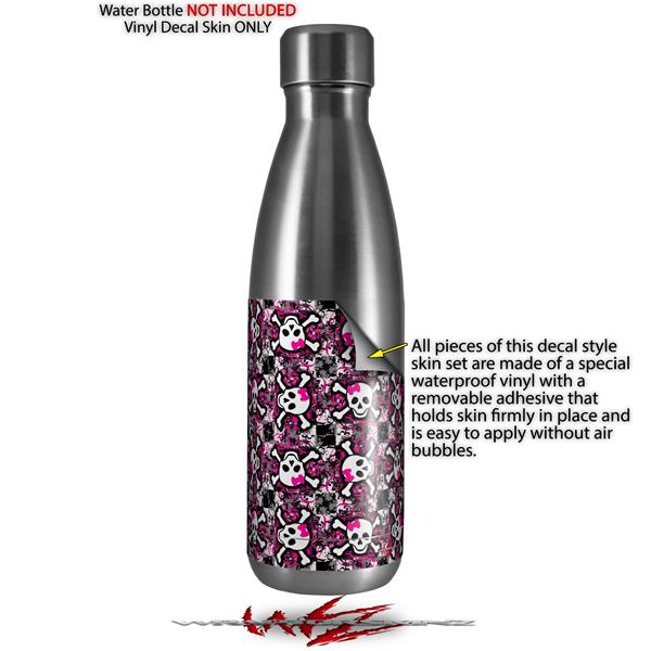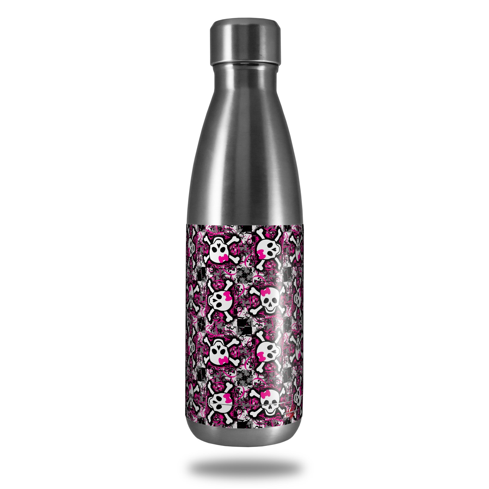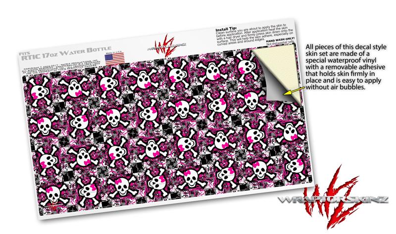 Skin Decal Wrap for RTIC Water Bottle 17oz Splatter Girly Skull Pink (BOTTLE NOT INCLUDED)
