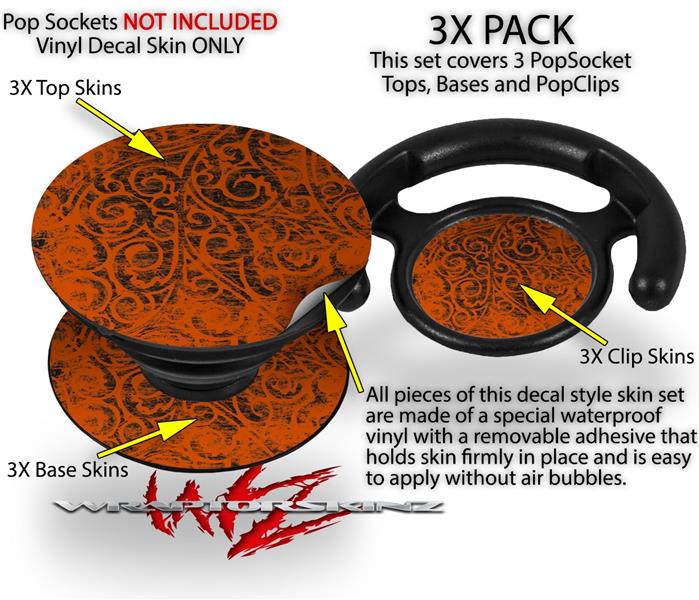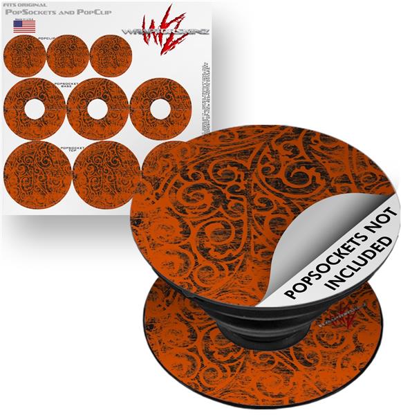 Decal Style Vinyl Skin Wrap 3 Pack for PopSockets Folder Doodles Burnt Orange (POPSOCKET NOT INCLUDED)