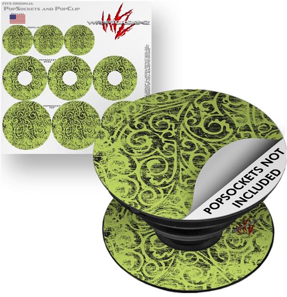Decal Style Vinyl Skin Wrap 3 Pack for PopSockets Folder Doodles Sage Green (POPSOCKET NOT INCLUDED)