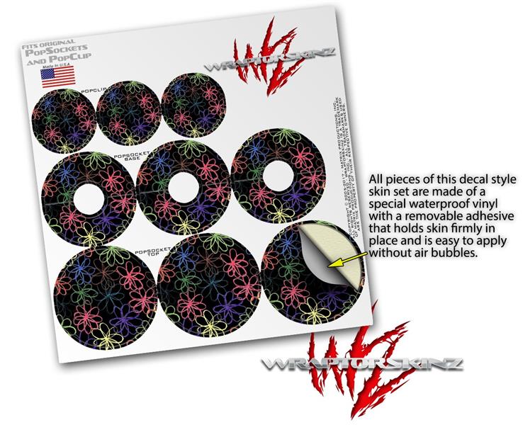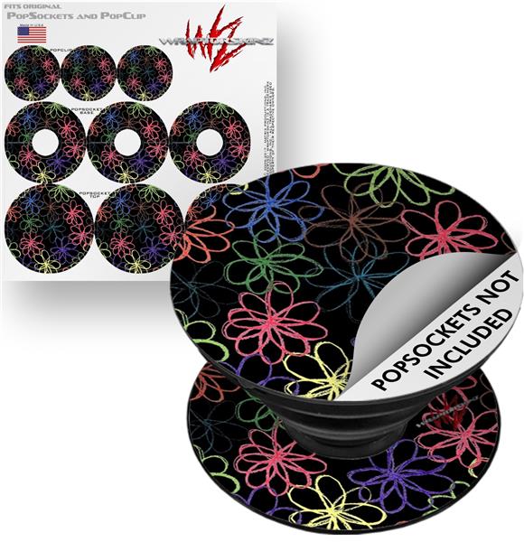Decal Style Vinyl Skin Wrap 3 Pack for PopSockets Kearas Flowers on Black (POPSOCKET NOT INCLUDED)