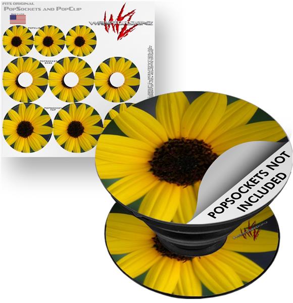 Decal Style Vinyl Skin Wrap 3 Pack for PopSockets Yellow Daisy (POPSOCKET NOT INCLUDED)