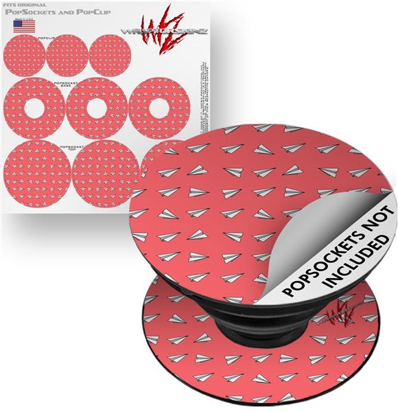 Decal Style Vinyl Skin Wrap 3 Pack for PopSockets Paper Planes Coral (POPSOCKET NOT INCLUDED)