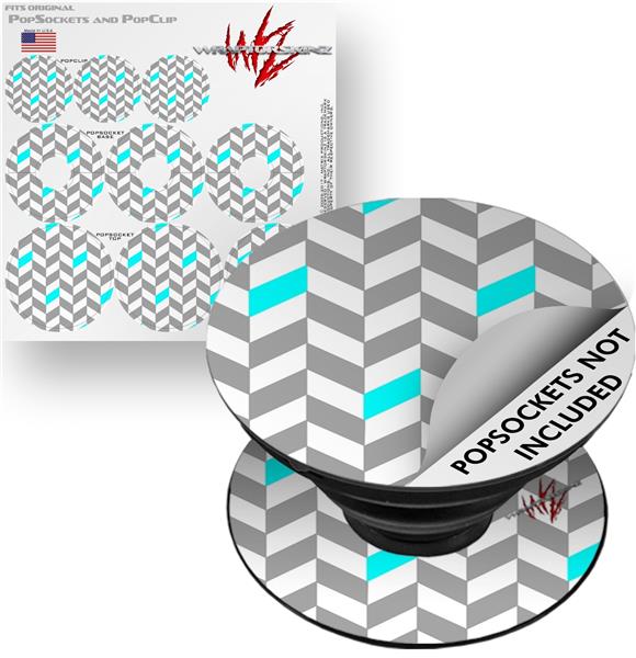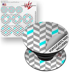 Decal Style Vinyl Skin Wrap 3 Pack for PopSockets Chevrons Gray And Aqua (POPSOCKET NOT INCLUDED)