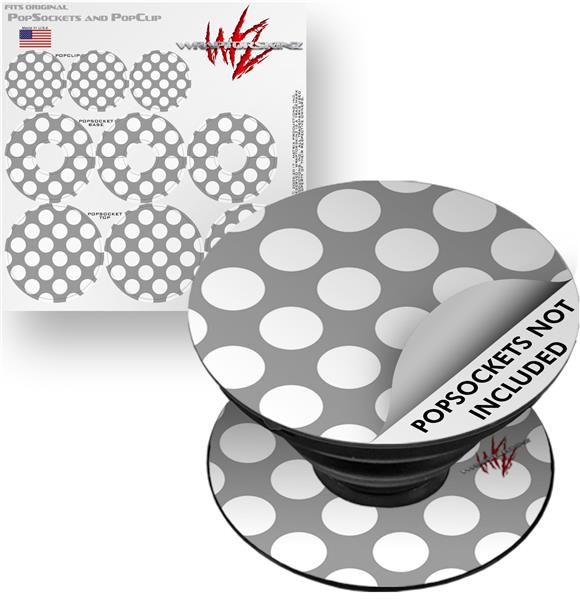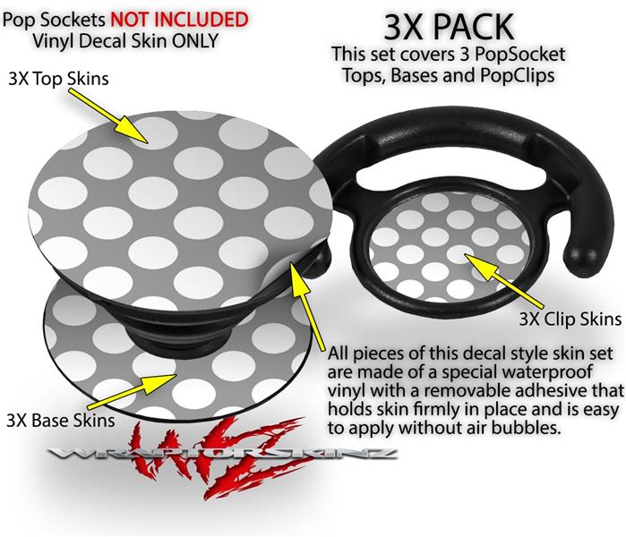 Decal Style Vinyl Skin Wrap 3 Pack for PopSockets Kearas Polka Dots Whtie On Gray (POPSOCKET NOT INCLUDED)