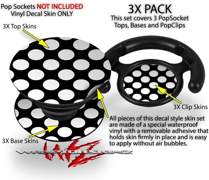 Decal Style Vinyl Skin Wrap 3 Pack for PopSockets Kearas Polka Dots White On Black (POPSOCKET NOT INCLUDED)