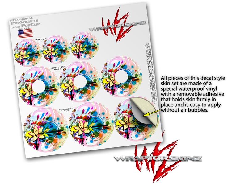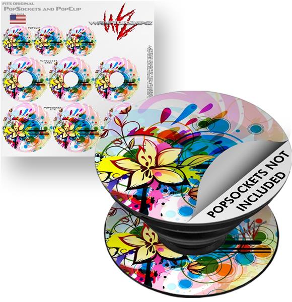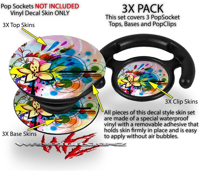 Decal Style Vinyl Skin Wrap 3 Pack for PopSockets Floral Splash (POPSOCKET NOT INCLUDED)