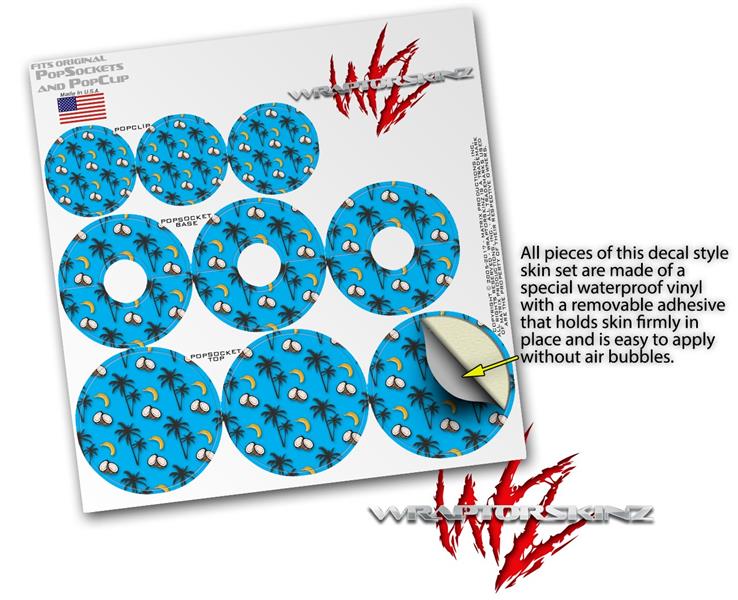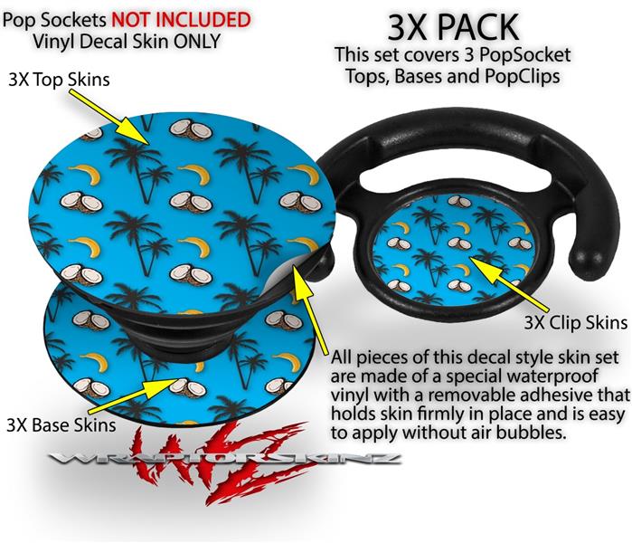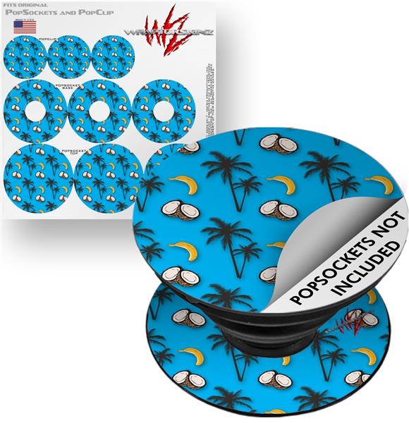 Decal Style Vinyl Skin Wrap 3 Pack for PopSockets Coconuts Palm Trees and Bananas Blue Medium (POPSOCKET NOT INCLUDED)