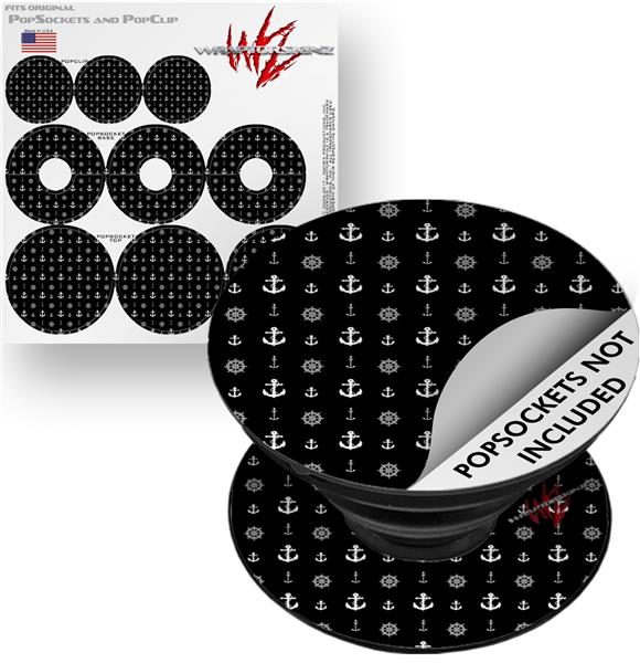 Decal Style Vinyl Skin Wrap 3 Pack for PopSockets Nautical Anchors Away 02 Black (POPSOCKET NOT INCLUDED)