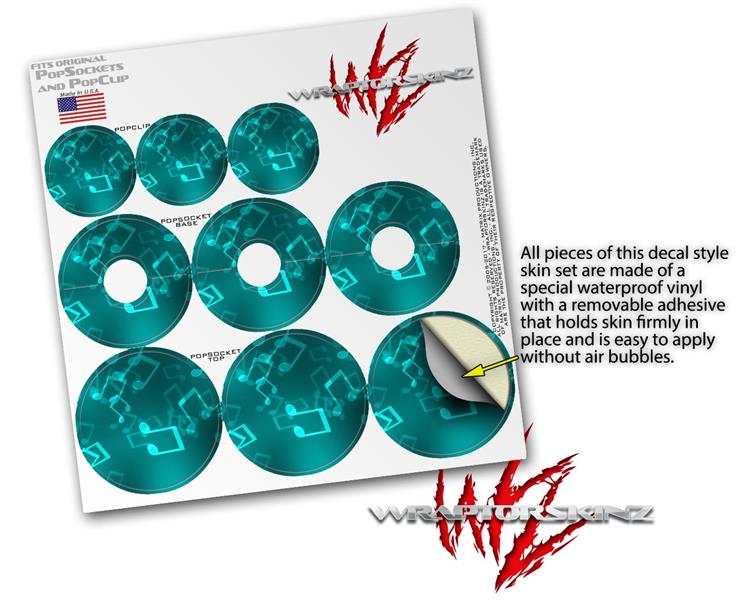 Decal Style Vinyl Skin Wrap 3 Pack for PopSockets Bokeh Music Neon Teal (POPSOCKET NOT INCLUDED)