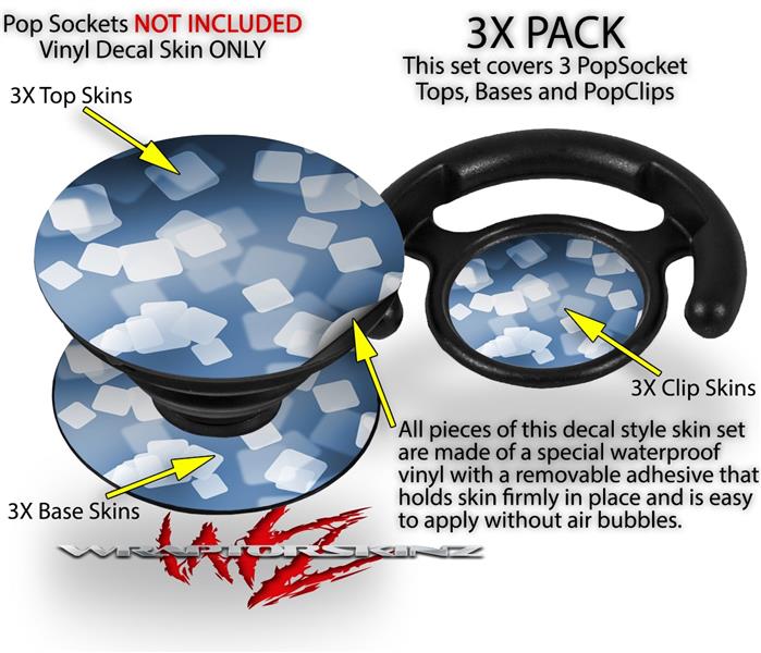 Decal Style Vinyl Skin Wrap 3 Pack for PopSockets Bokeh Squared Blue (POPSOCKET NOT INCLUDED)