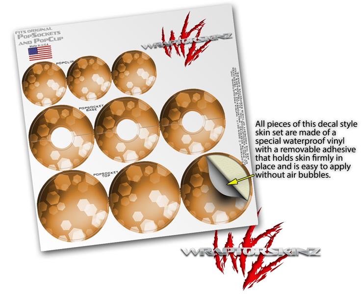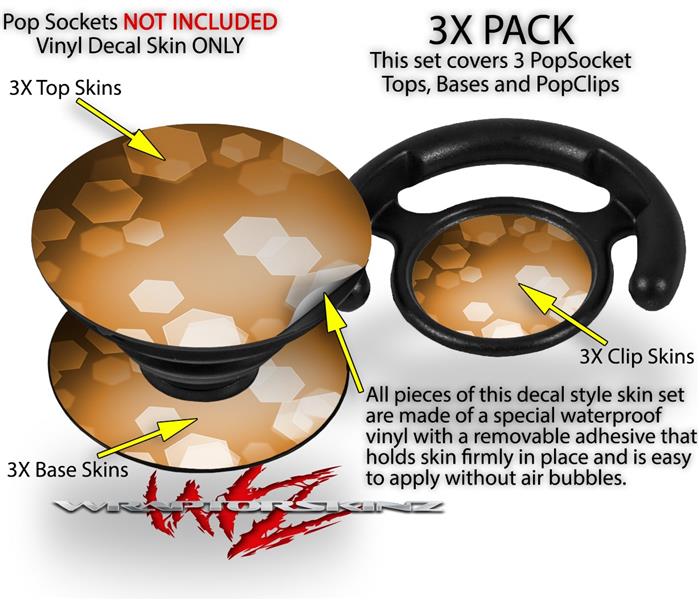Decal Style Vinyl Skin Wrap 3 Pack for PopSockets Bokeh Hex Orange (POPSOCKET NOT INCLUDED)