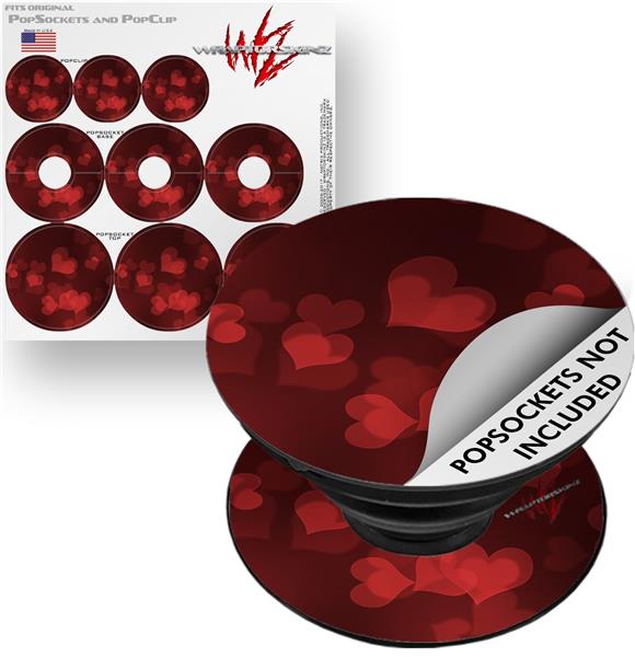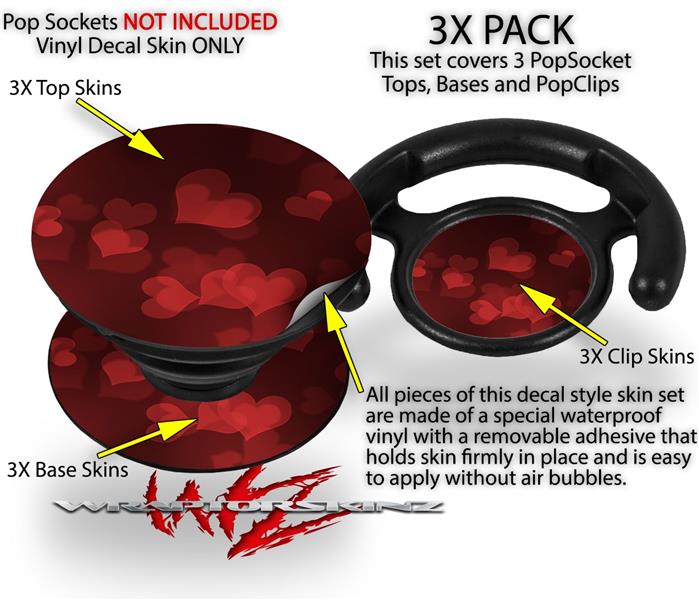 Decal Style Vinyl Skin Wrap 3 Pack for PopSockets Bokeh Hearts Red (POPSOCKET NOT INCLUDED)