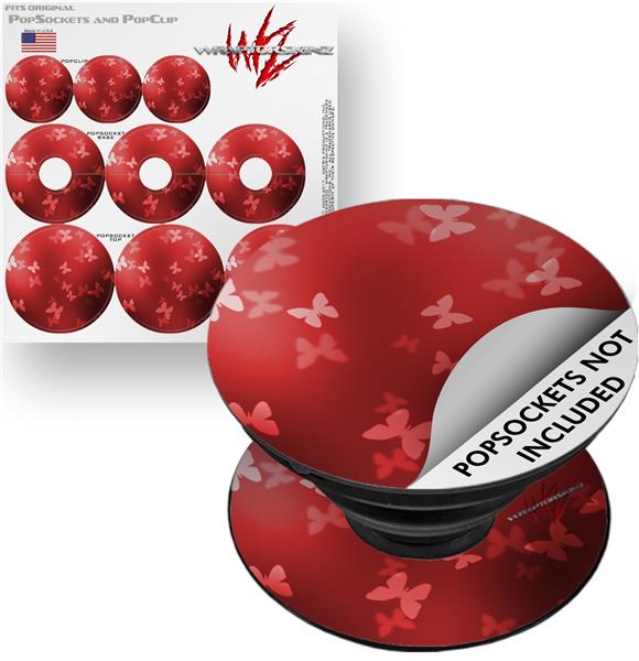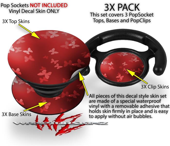 Decal Style Vinyl Skin Wrap 3 Pack for PopSockets Bokeh Butterflies Red (POPSOCKET NOT INCLUDED)