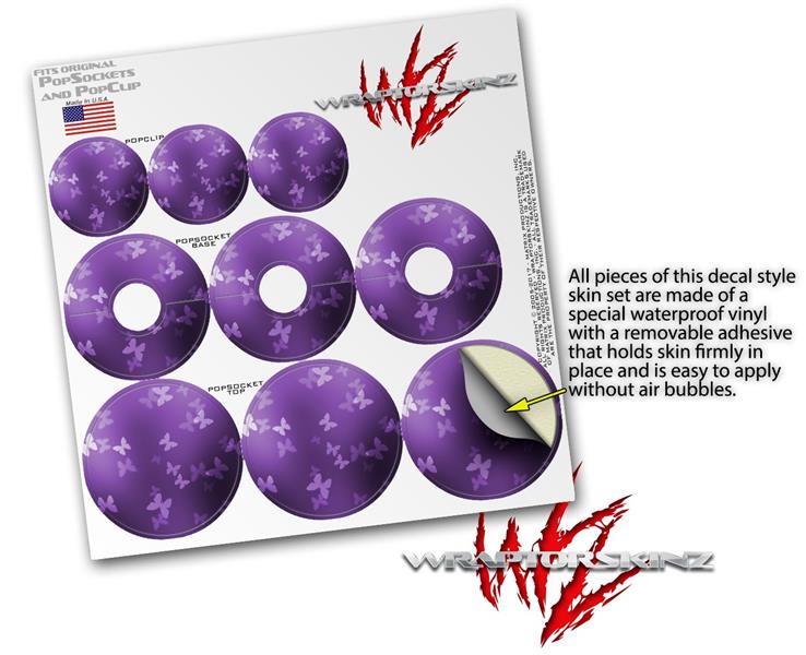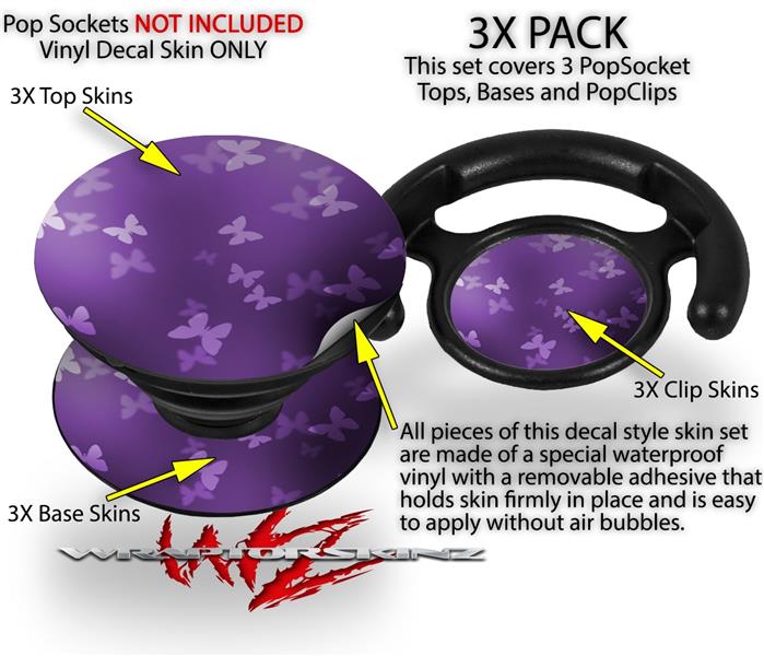Decal Style Vinyl Skin Wrap 3 Pack for PopSockets Bokeh Butterflies Purple (POPSOCKET NOT INCLUDED)