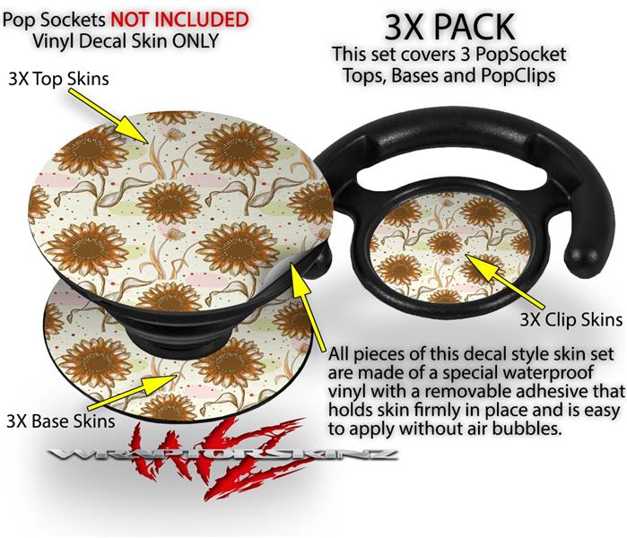 Decal Style Vinyl Skin Wrap 3 Pack for PopSockets Flowers Pattern 19 (POPSOCKET NOT INCLUDED)