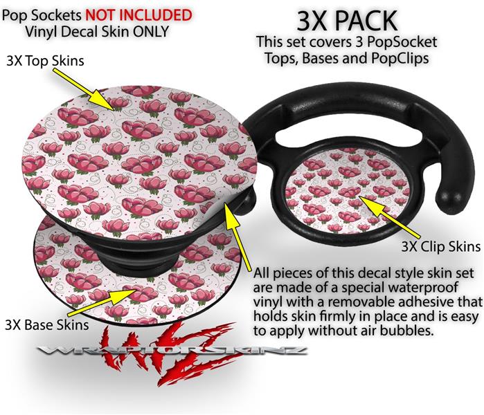 Decal Style Vinyl Skin Wrap 3 Pack for PopSockets Flowers Pattern 16 (POPSOCKET NOT INCLUDED)