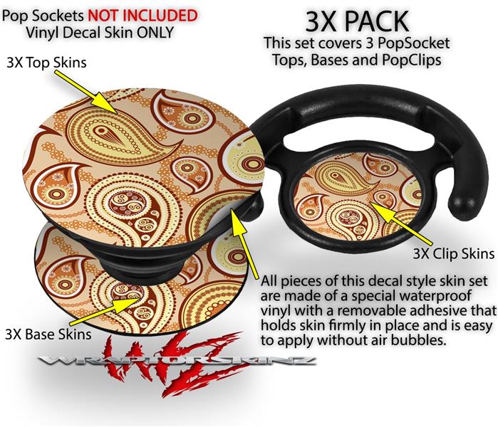 Decal Style Vinyl Skin Wrap 3 Pack for PopSockets Paisley Vect 01 (POPSOCKET NOT INCLUDED)